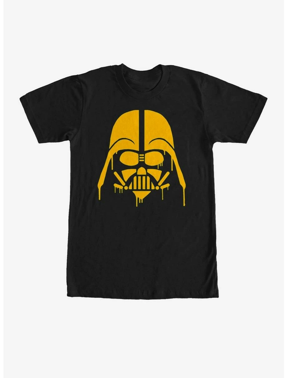 Embrace the dark side of the Force this All Hallows’ Eve with the Star Wars Dripping Darth Vader Helmet Black T-Shirt! A spooky version of Darth Vader’s helmet appears to ooze in a fun print on the front of this unique black Star Wars Halloween shirt. 100% Cotton.