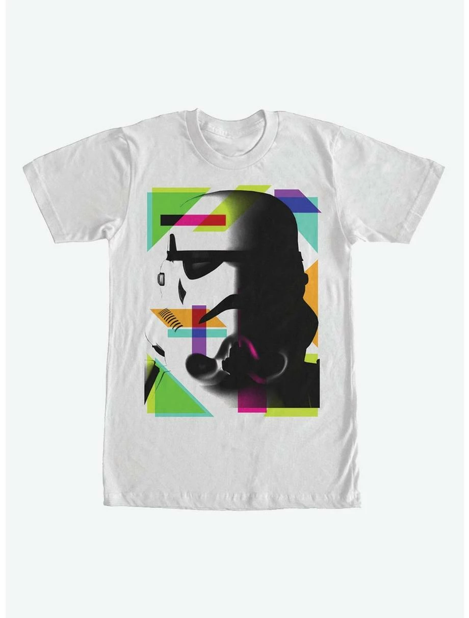 Ditch the Rebel Alliance and enlist with the Galactic Empire with the Star Wars Stormtrooper Geometry White T-Shirt. Colorful shapes decorate an image of a Stormtrooper printed on the front of this unique men’s Stormtrooper T-shirt. 100% Cotton.